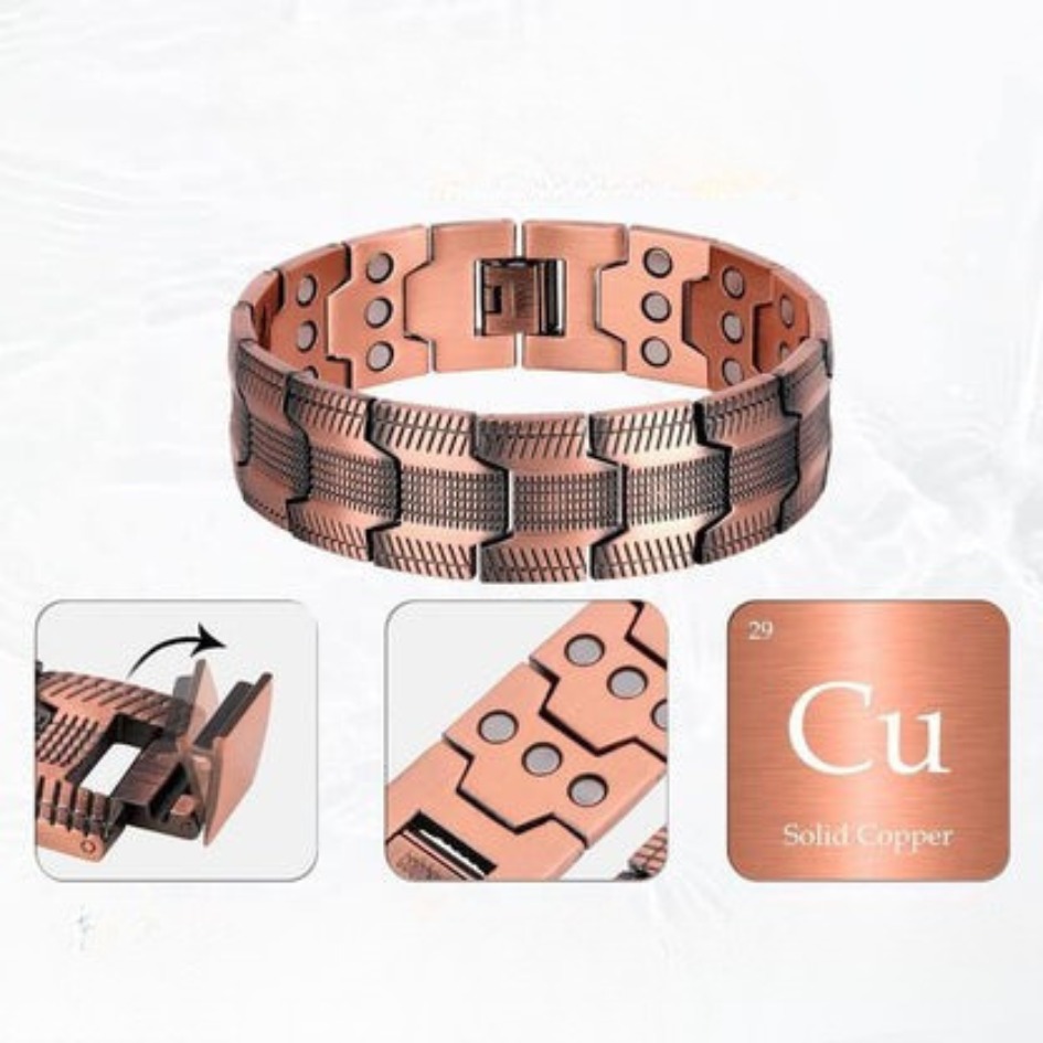 Le Bracelet Magnétique en Cuivre combine les principes de la magnétothérapie et les bienfaits du cuivre pur pour améliorer votre bien-être au quotidien.