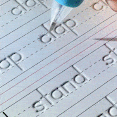 Installez l’enfant confortablement, stylo tenu entre pouce et index, poignet posé. Suivre d’abord les rainures lentement, puis retracer sans guide. Essuyez les pages avec un chiffon doux pour prolonger la réutilisation. Objectif : 5 jours/semaine.