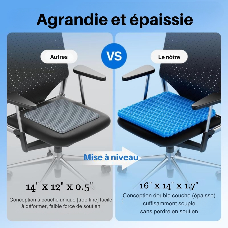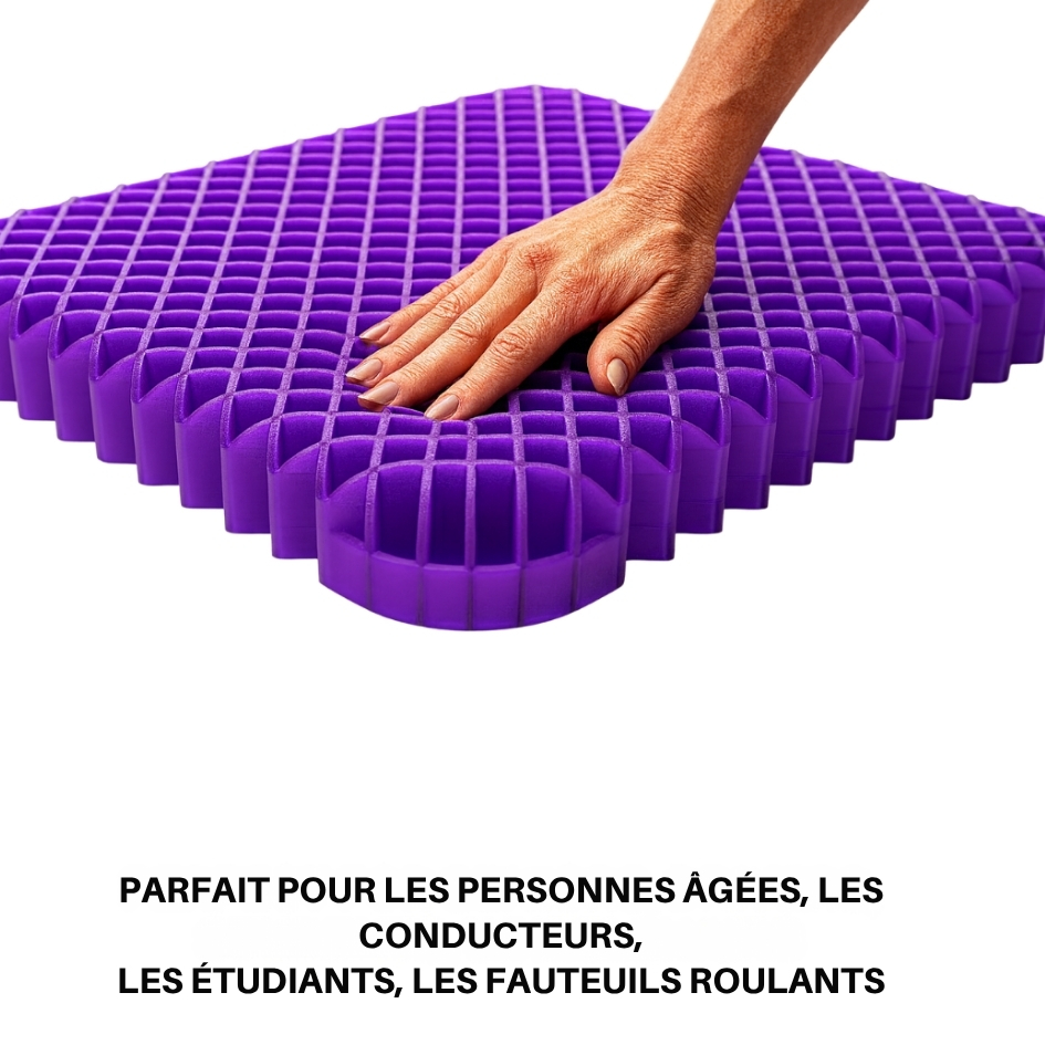 Le Coussin Gel Comfort™ a été conçu pour une seule mission : transformer n’importe quelle assise en siège ultra-confortable et soulageant, en quelques secondes. Sa structure en gel alvéolé répartit votre poids, absorbe les points de pression et laisse l’air circuler pour éviter l’échauffement.