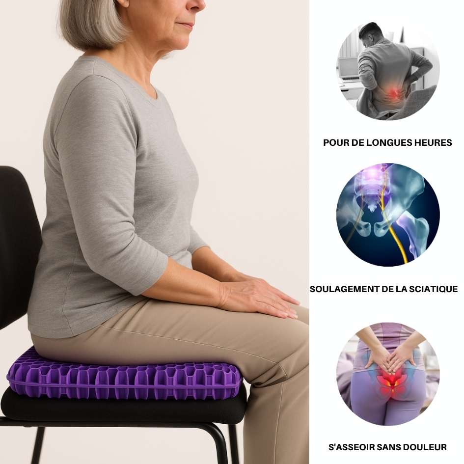 De nombreux utilisateurs rapportent un soulagement en cas de sciatique, de douleurs lombaires ou de coccyx sensible grâce à la meilleure répartition des pressions et au soutien plus doux. Cependant, ce coussin ne remplace pas un avis médical. En cas de pathologie ou de douleur importante, il est toujours recommandé de demander conseil à un professionnel de santé.