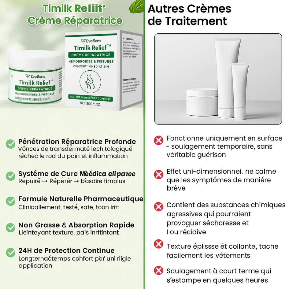 Je traînais ce problème depuis des mois et j’avais tout essayé. Timilk Relief™ m’a surpris par la vitesse d’apaisement et le fait que je puisse enfin rester assis longtemps pour travailler. En quelques jours, j’ai remarqué moins d’irritations après les toilettes et la peur des rechutes a diminué. La protection tient bien, même lors de journées chargées. Aucun résidu gras, pas d’odeur gênante. C’est devenu mon rituel matin/soir.