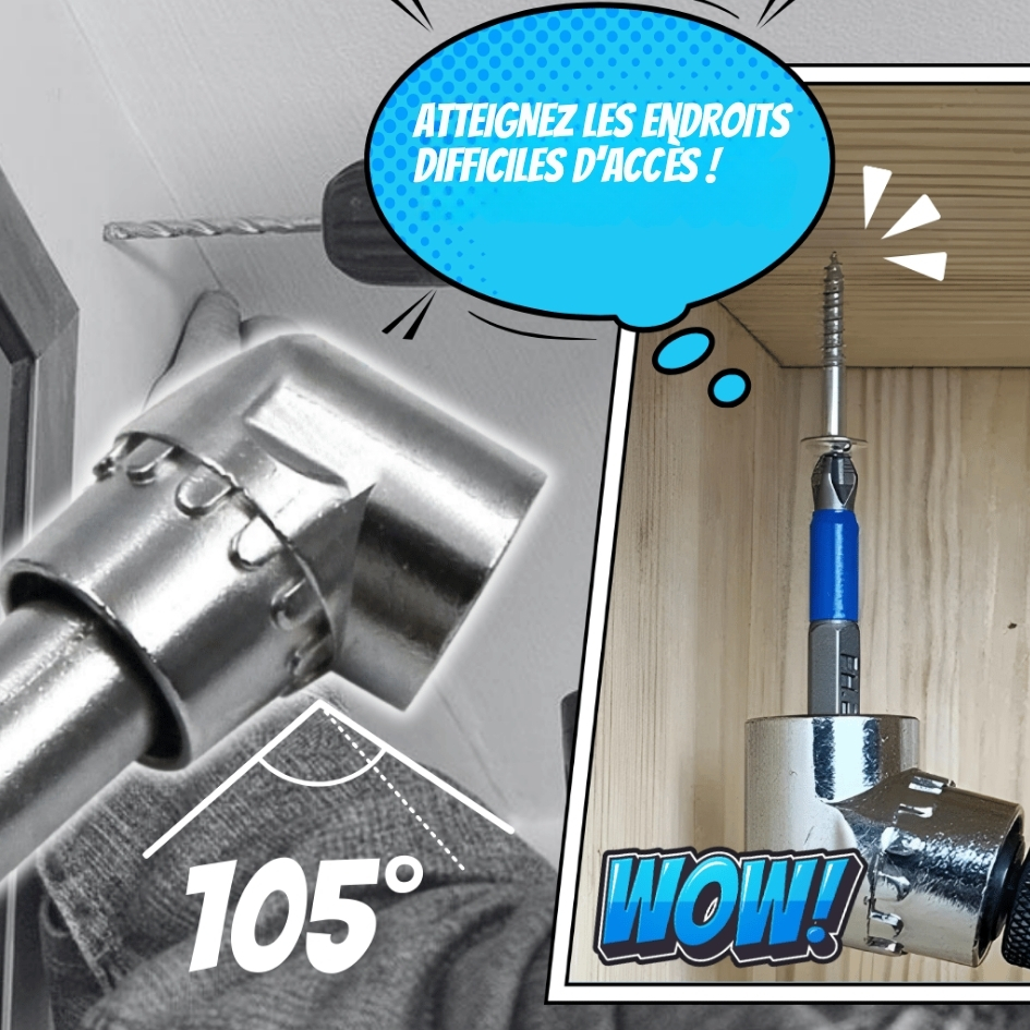 Je pensais que c’était un gadget de plus, mais je l’ai pris pour essayer. Première utilisation : fixer des charnières dans un meuble de cuisine déjà monté. Impossible d’y entrer avec ma visseuse classique. Avec l’embout d’angle, la tête a pivoté dans le fond du caisson et j’ai pu visser sans démonter le meuble. Depuis, je l’utilise pour tout : étagères, meubles, petites réparations. C’est devenu l’accessoire que je prête tout le temps à mes proches.
