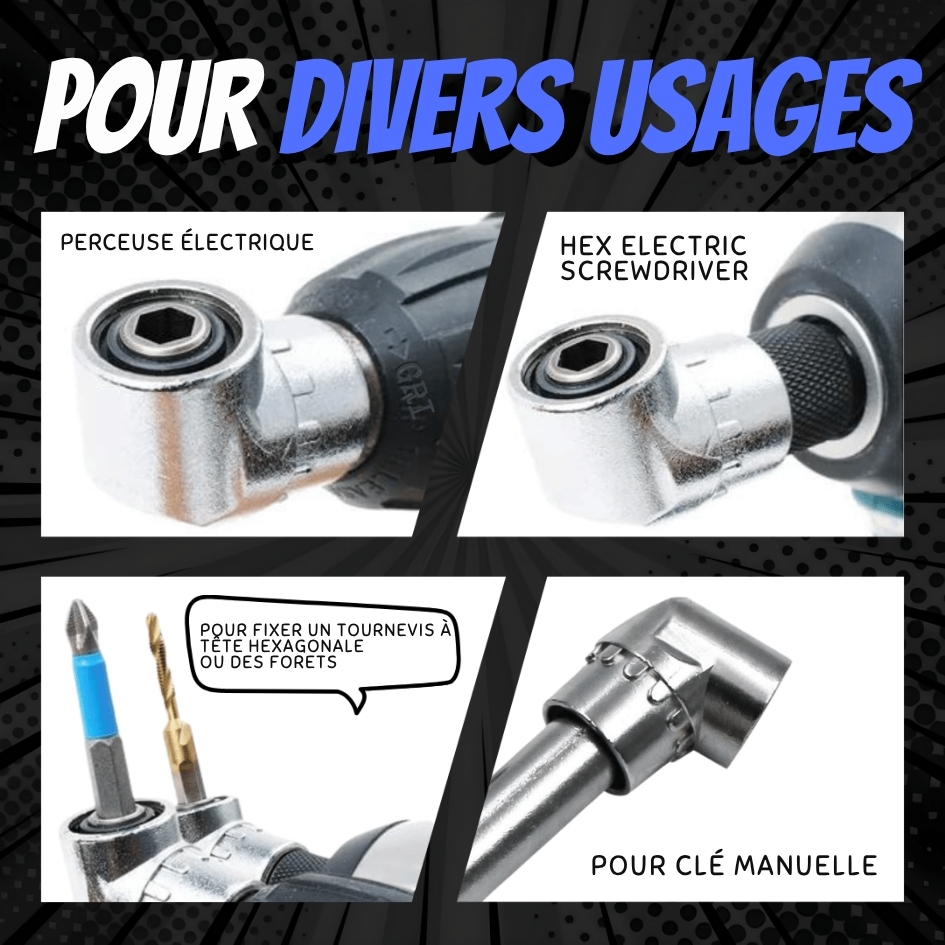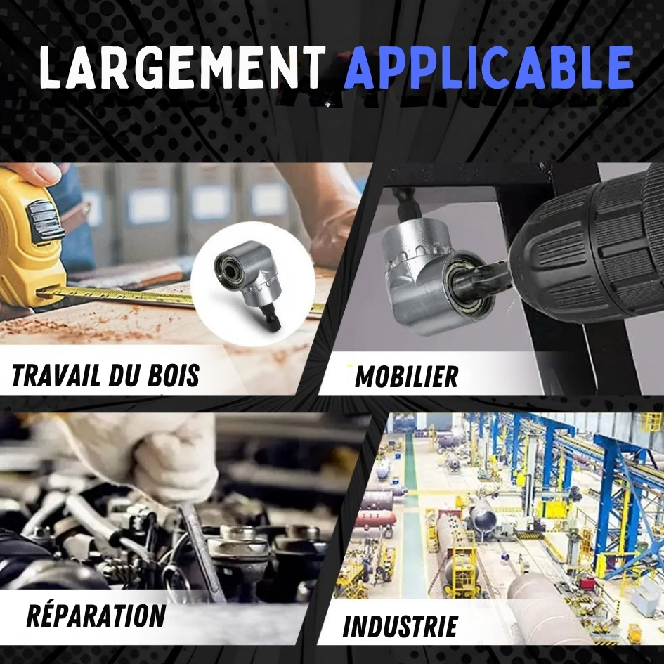 Que ce soit pour monter un meuble, fixer une étagère dans un renfoncement, intervenir dans un tableau électrique ou bricoler dans le moteur d’une voiture, AngleFlex Pro™ devient vite ce petit accessoire que vous gardez toujours à portée de main. Compact, solide, compatible avec vos embouts hexagonaux 1/4″, il transforme les travaux compliqués en gestes simples et fluides.