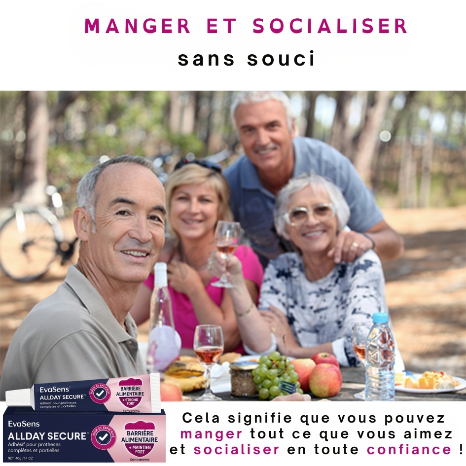 J’ai testé quantité d’adhésifs : trop collants, ou inefficaces au bout de quelques heures. AllDay Secure™ m’a surprise par sa mise en place très propre et la sensation de “calage” immédiat. J’ai tenu quatre jours sans réappliquer, avec cafés, soupes, et un dîner très long. Et surtout, à l’enlèvement, pas de bataille : un ruban, et c’est fini. C’est la première fois que je me sens aussi sereine avec mes prothèses.