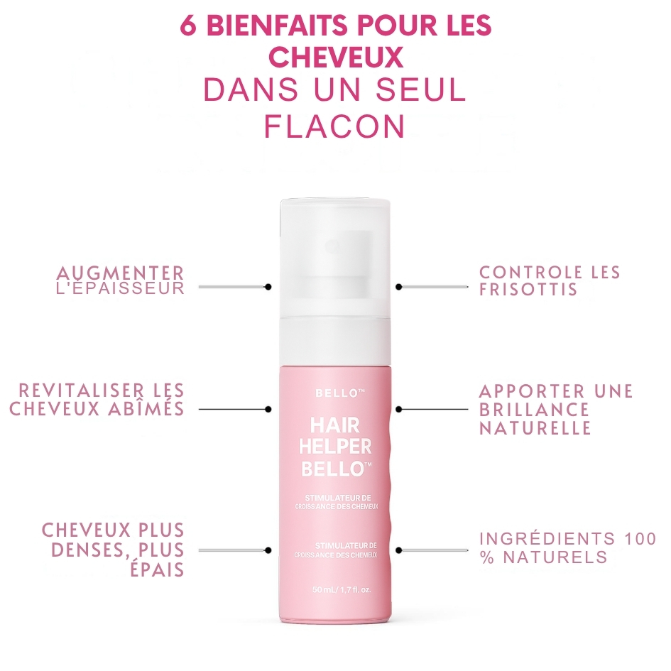 Hair Helper Bello™ est né de la collaboration entre spécialistes du cuir chevelu, formulateurs en cosmétique et passionnés de soins capillaires naturels. L’objectif : créer une brume légère, sans traitements lourds ni médicaments, qui cible les racines avec des actifs connus pour leur rôle sur la vitalité des cheveux.